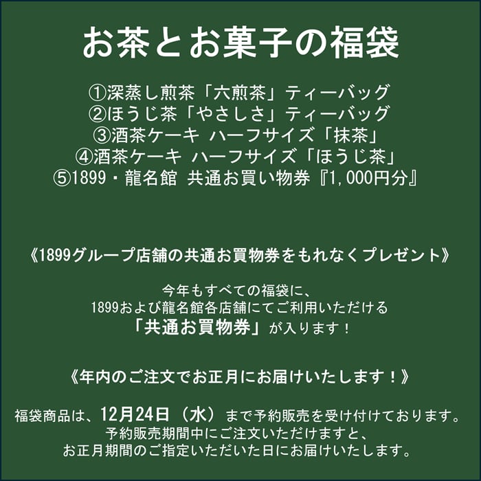 お茶とお菓子でほっと一息つける福袋を、新年のおともにいかがでしょうか。